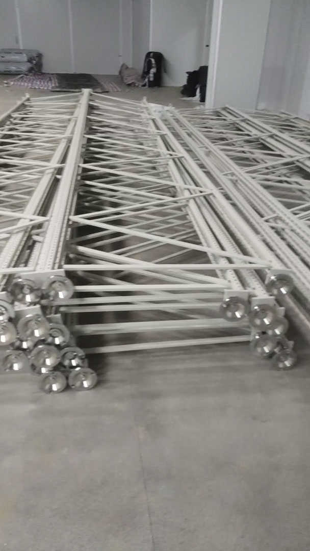 這個是裝好立柱組的樣子,把所有的立柱組組裝好了之后再立起來。關注我,下期帶大家看看智能貨架安裝好雛形的樣子。