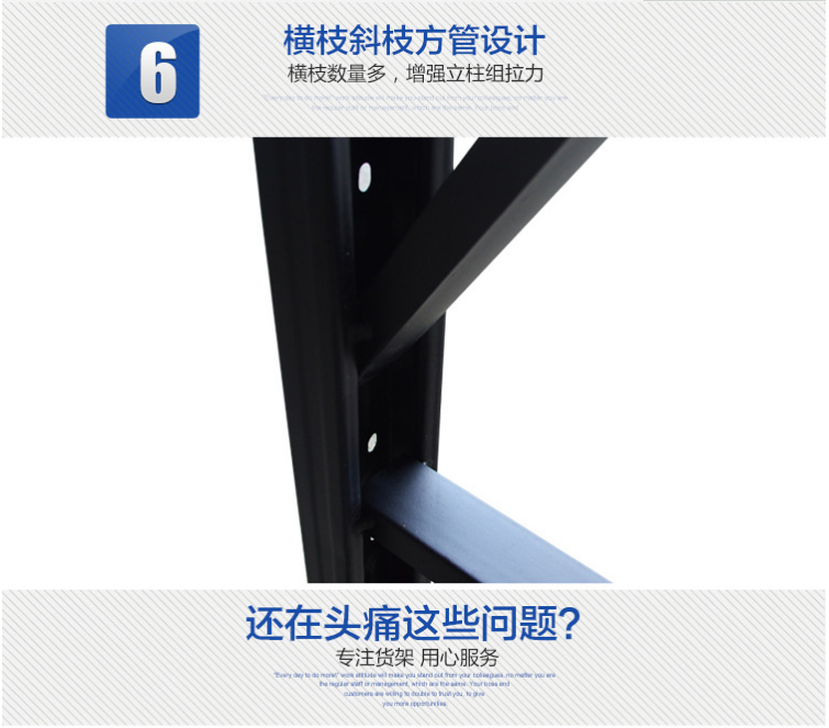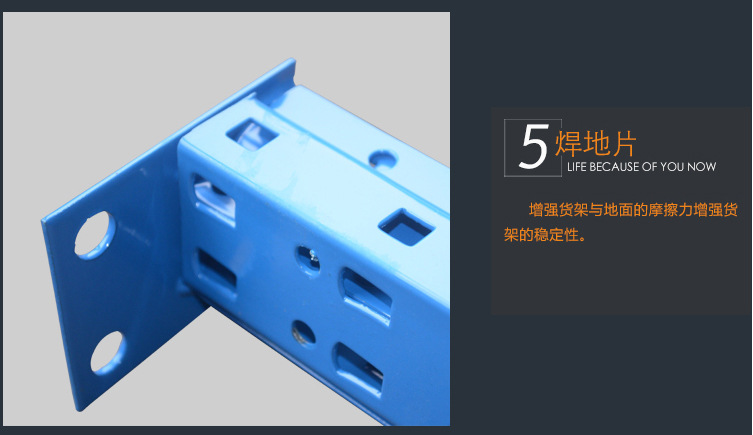 由立柱,橫梁,層板組裝而成的,結構簡單,每層層板最大載重可達300kg,層高50mm任意調節,不用螺栓拼裝而成,安裝拆卸方便,且可無限連接。
